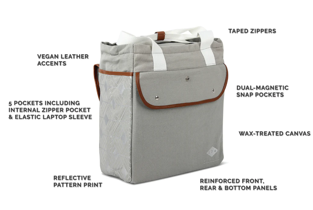 Constructed with a wax-treated canvas, features an internal small zippered pocket for valuables plus a laptop sleeve. The front, rear, and bottom panels are reinforced, rated to carry up to 20lbs!
